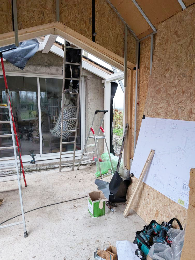 L’ossature de l’extension est en bois.