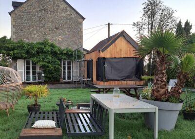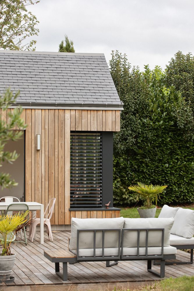 Dans un environnement rural, cette extension bois vient prolonger une maison en pierre du XIXe siècle avec une idée simple : offrir à ses habitants un petit salon supplémentaire, largement ouvert sur le jardin. Plus qu’un agrandissement, le projet accompagne une nouvelle manière d’habiter la maison, en créant un espace de vie lumineux et en requalifiant l’extérieur devant la façade pour en faire un véritable lieu de vie au quotidien.