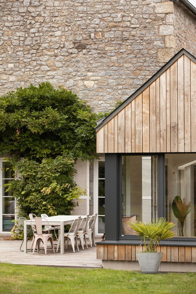 Extension bois d’une maison en pierres