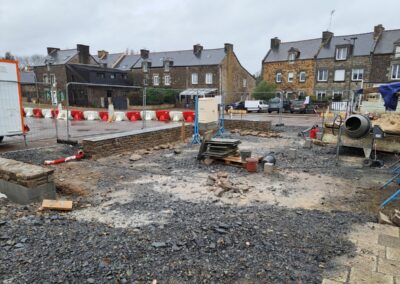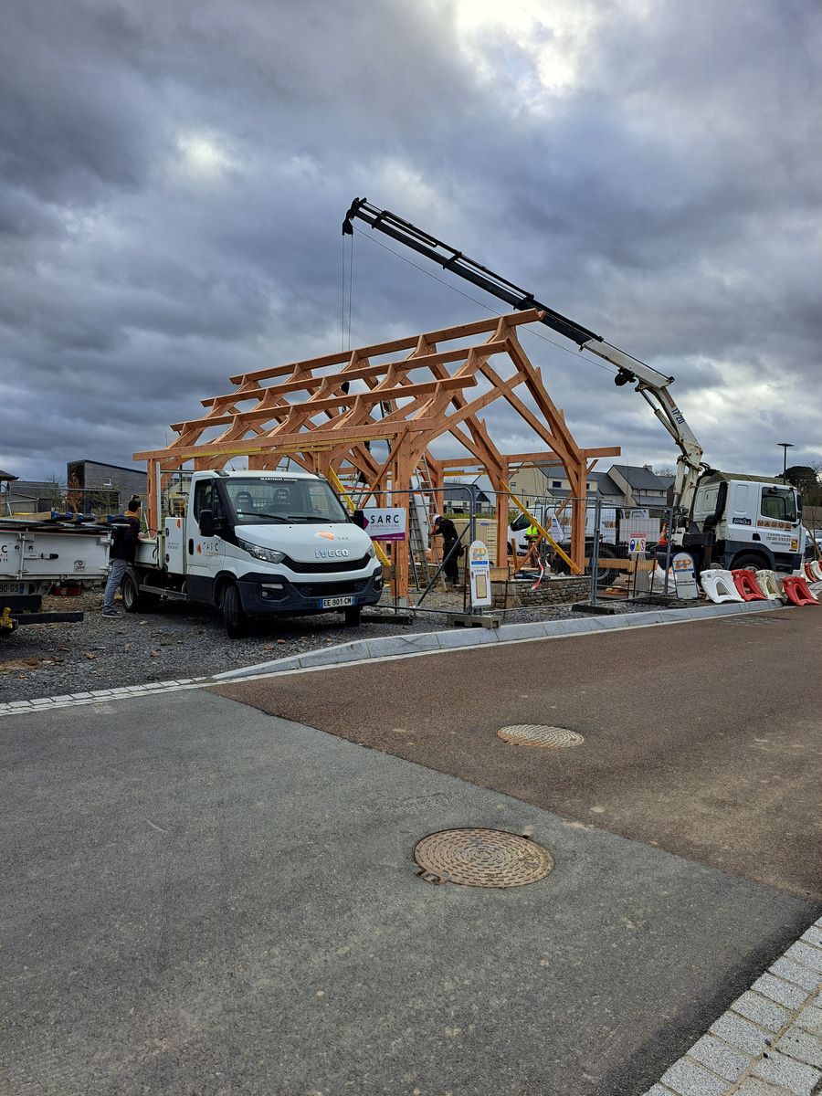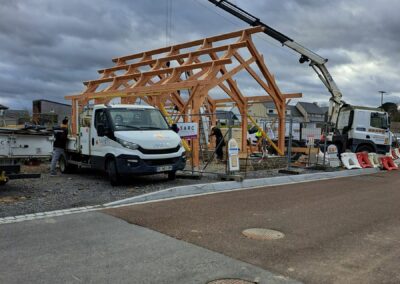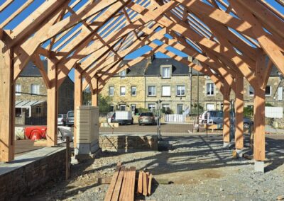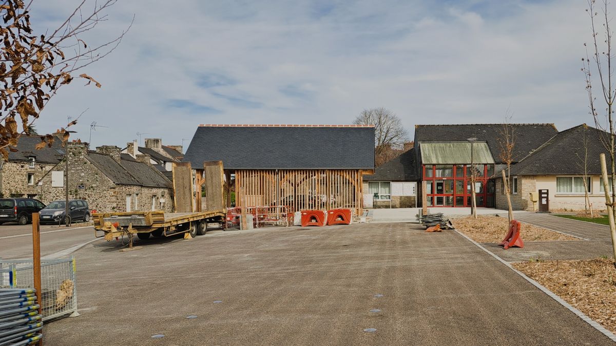 À Langrolay-sur-Rance, le projet s’inscrit au cœur du bourg, à proximité des principaux équipements publics de la commune. Sa création accompagne une démarche plus large de requalification du centre-bourg, qui redonne cohérence et lisibilité aux espaces publics. La halle vient prendre place dans cette transformation d’ensemble comme un repère simple, utile et identifiable, capable de renforcer l’attractivité du centre de village.